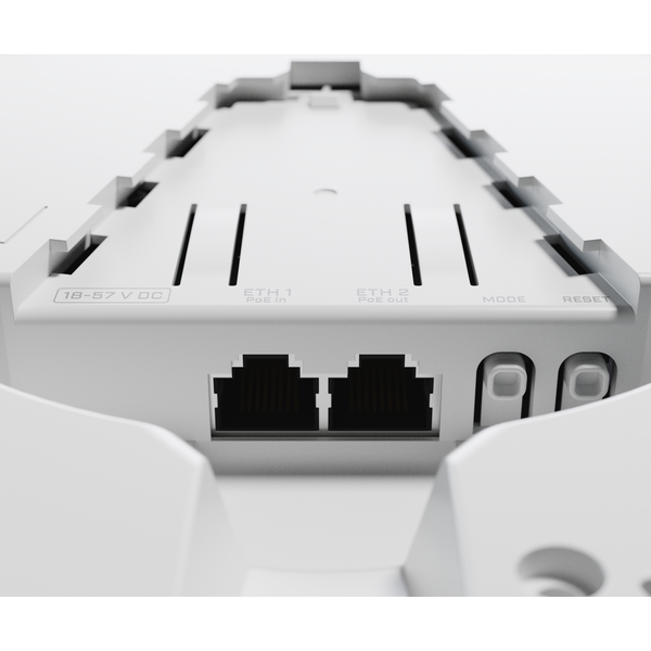 Embora o rádio ofereça suporte ao modo repetidor, as duas portas Gigabit Ethernet permitem expandir a sua rede também com cabos, mesmo que seja necessário PoE. O cAP XL ac suporta entrada PoE 802.3af/at na primeira porta e saída PoE passiva (até 57V) na segunda porta.